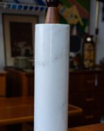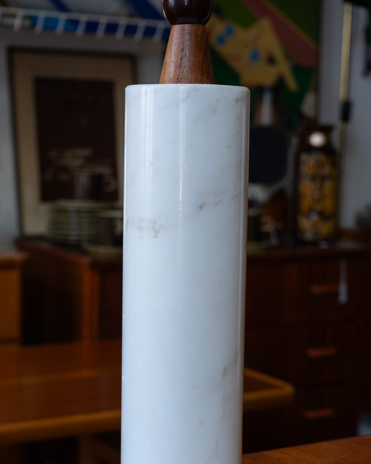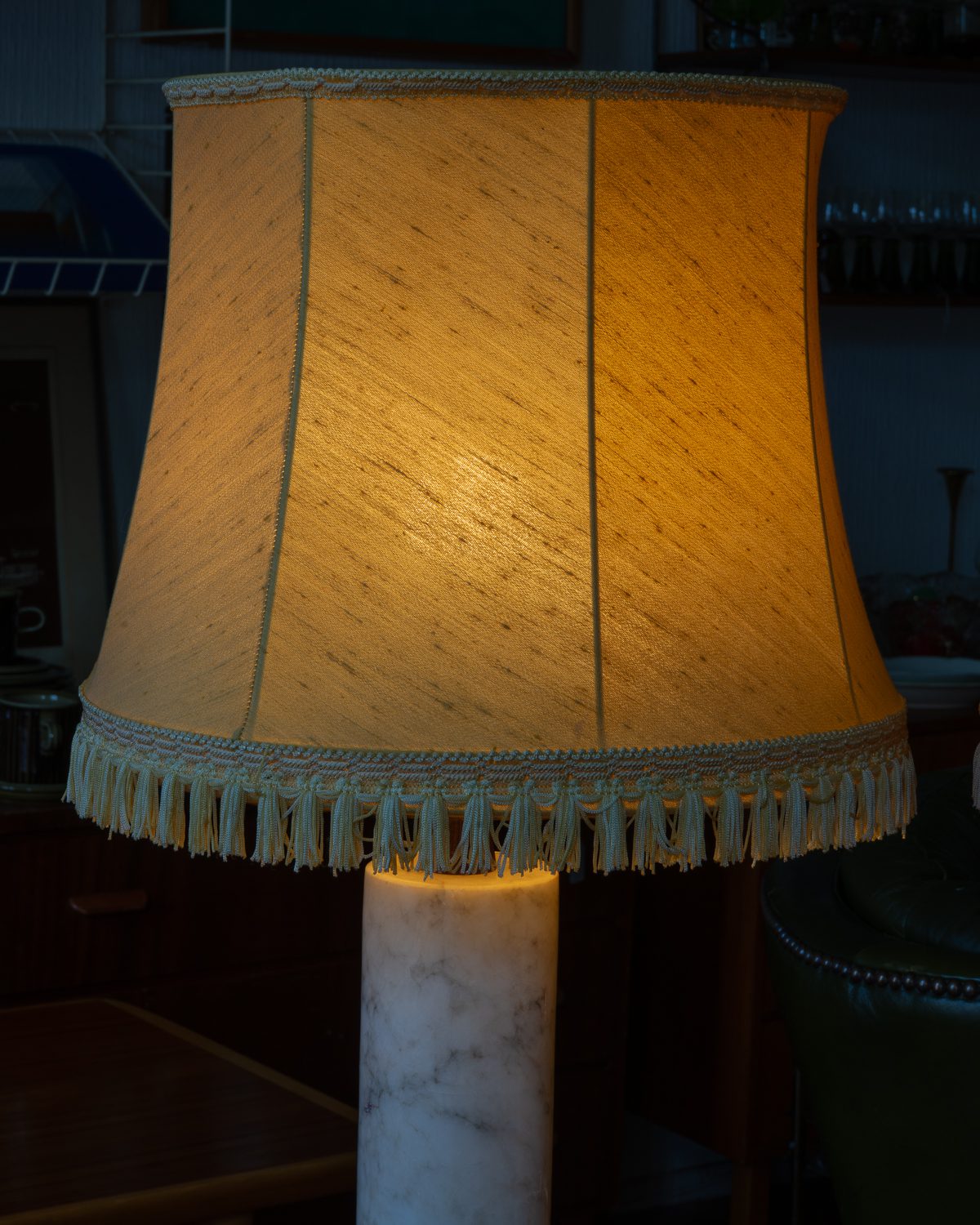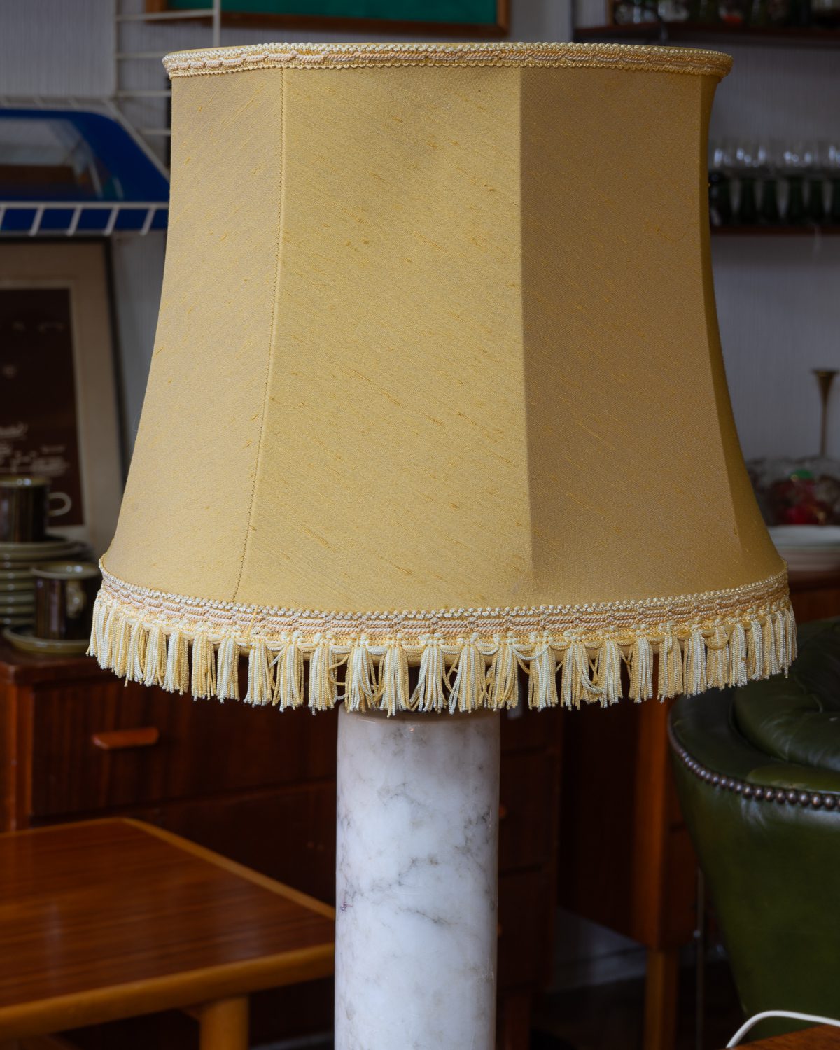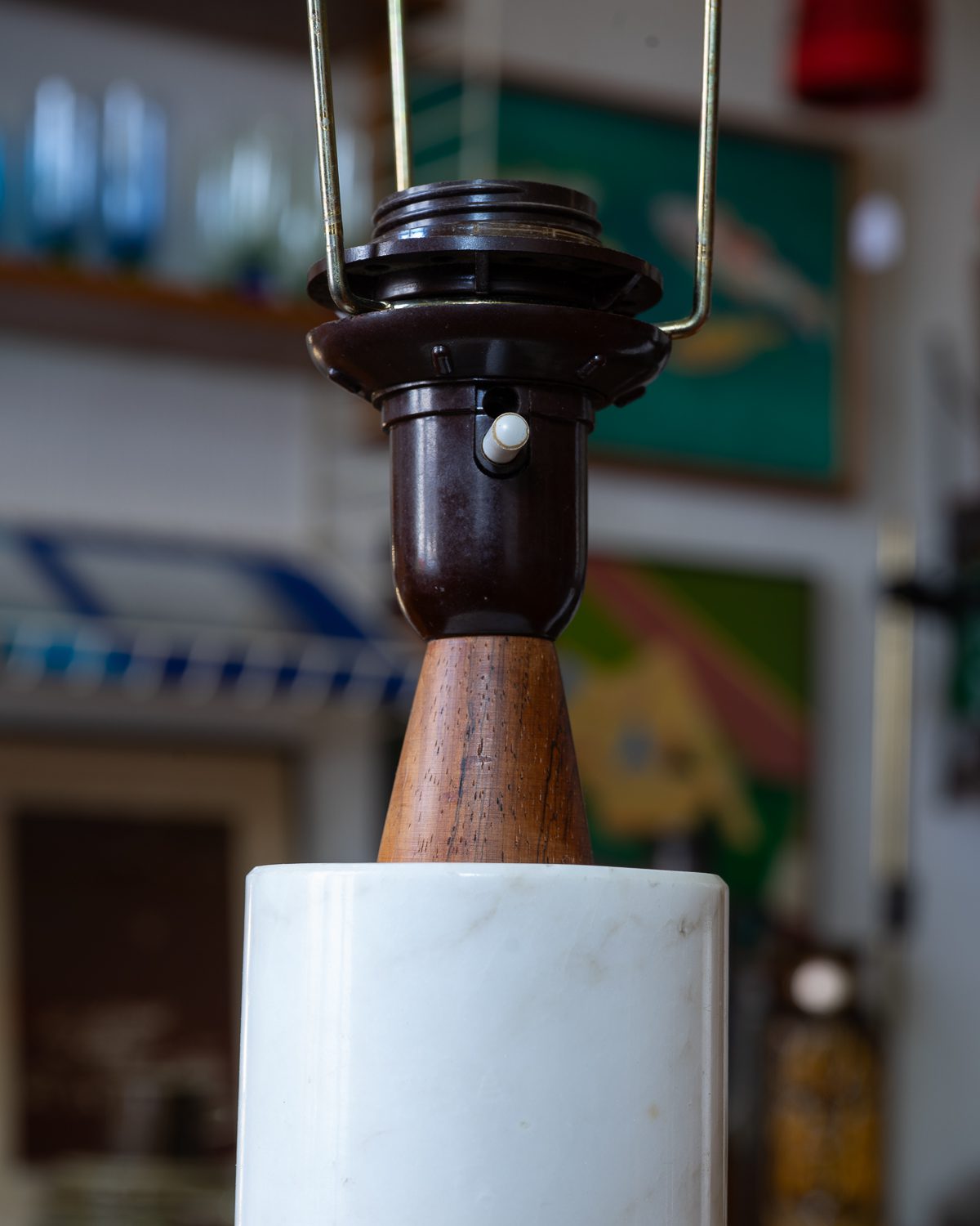 Itaaliast pärit raske marmorist jalaga ja tiigipuust detailidega laualampide paar. Ühel lambil on sokkel vahetatud tänapäevase vastu, teisel on säilinud originaalne sokkel. Lambid on heas korras ja toimivad. Kuplid pole originaalsed, neid on võimalik vahetada teiste vastu. Suure huvi korral võime müüa ka ühe lambi eraldi, kuid eelistame müüa paarina.