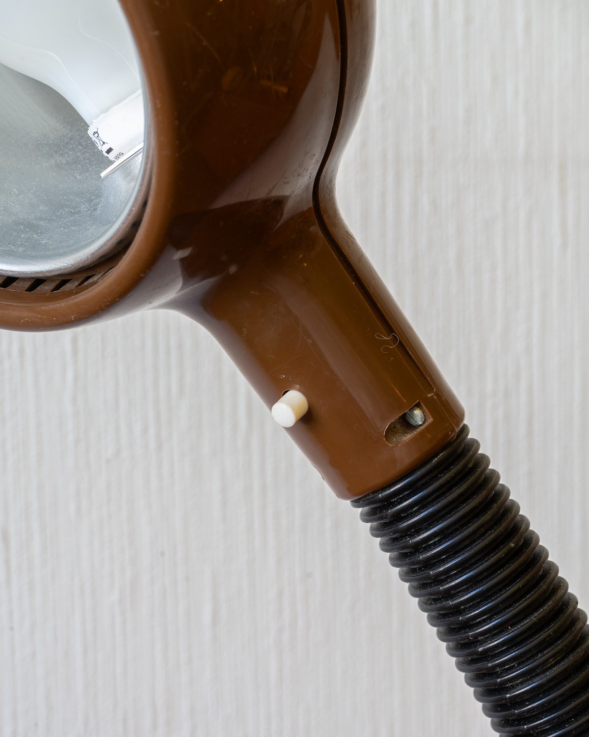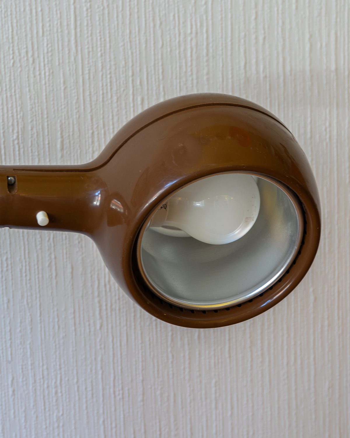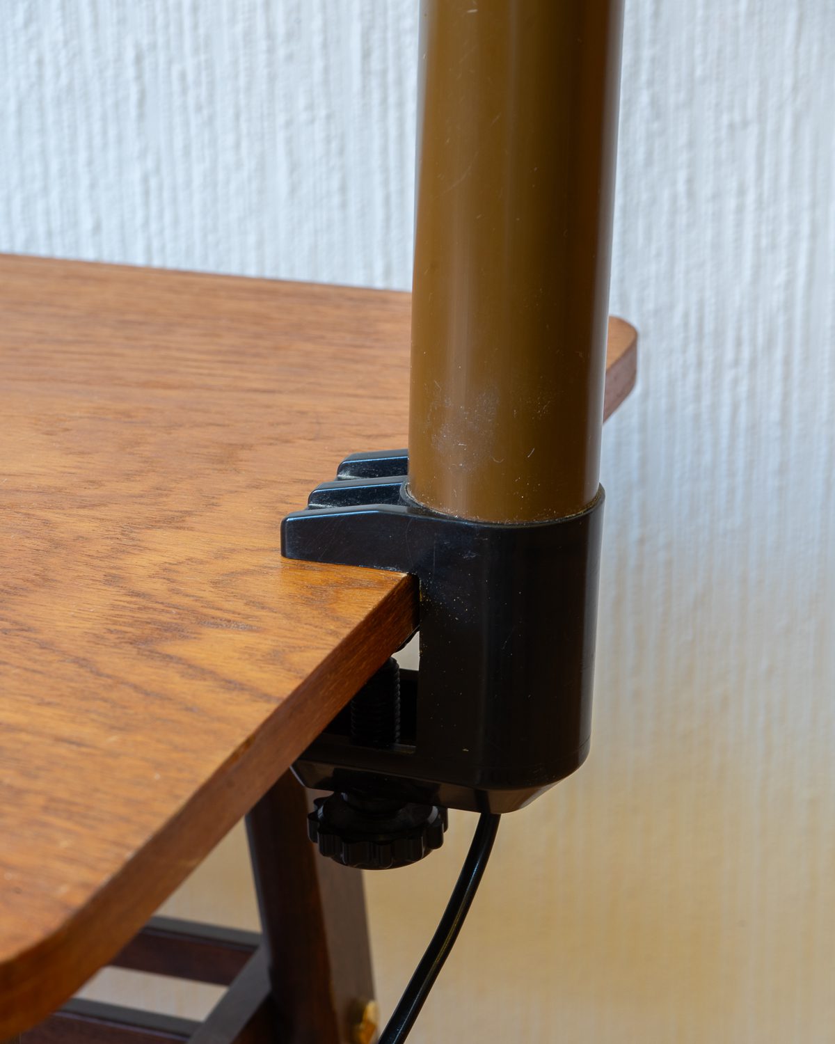 1970ndatel Rootsi valgustitootja Fagerhultsi auhinnalisest “Cobra” valgustiseeriast pärit klambrikinnitusega laualamp. Lambi suund on 360° ulatuses reguleeritav. Lamp on heas vintage seisukorras, esineb vanusele omast kulumist, kriime ja värvikahjustusi.