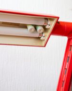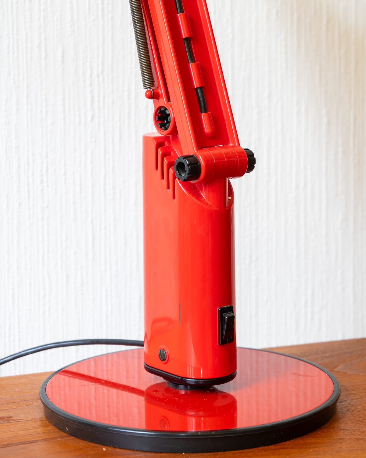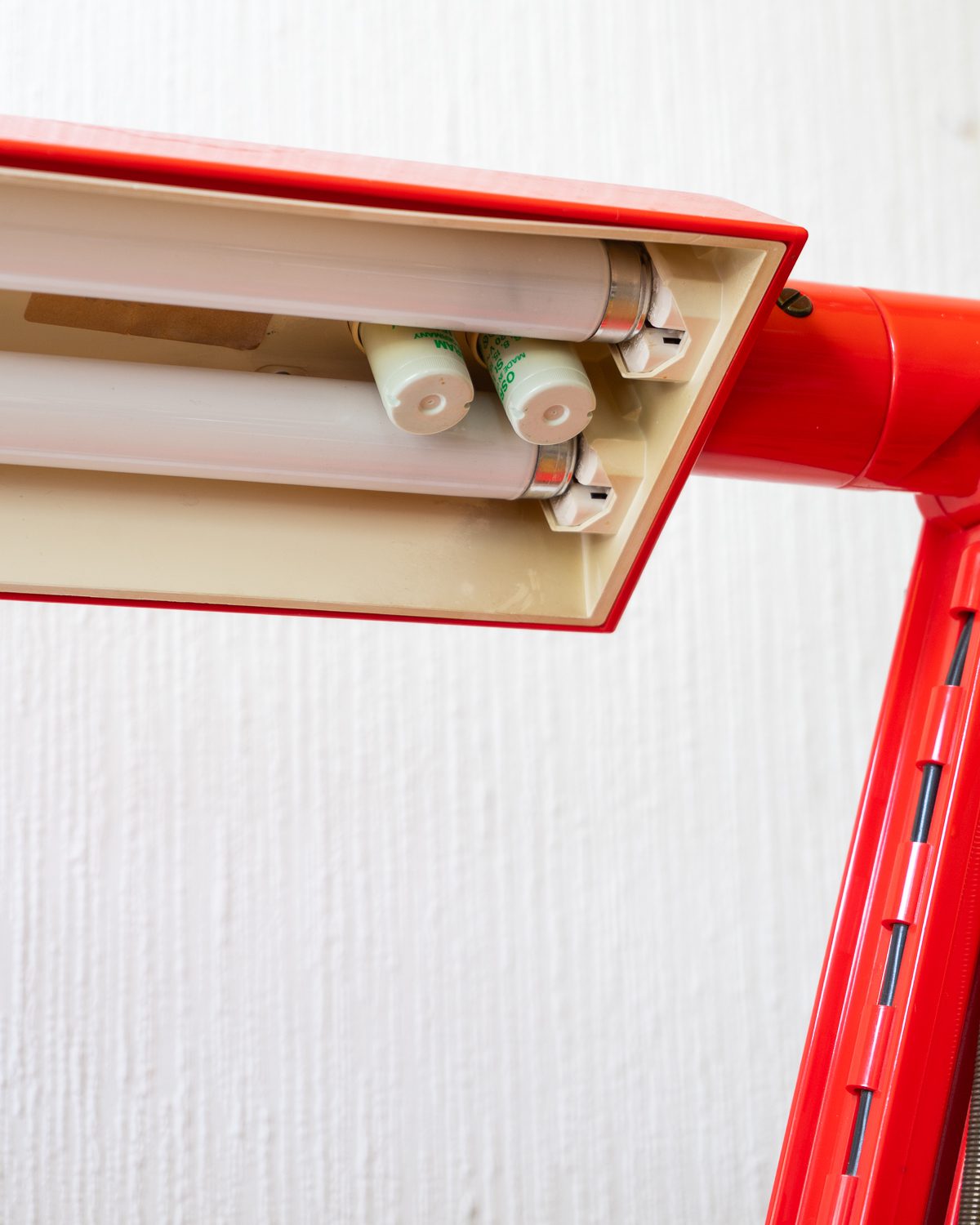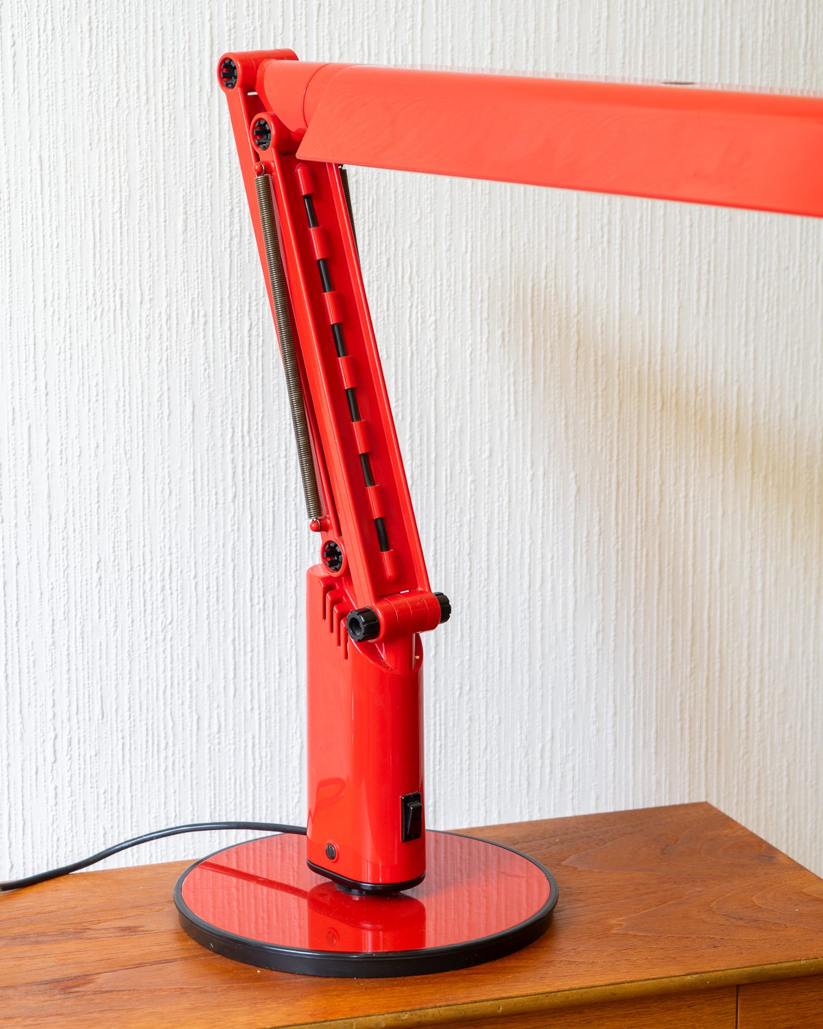 Tom Ahlstromi ja Hans Ehrichi disainitud punasest plastmassist Luciferi-nimeline space age laualamp. Valmistatud Rootsi valgustitootja Fagherhultsi poolt 1970ndatel. Lambi pinnal esineb vanusele omaseid kriipse-kraapse. Elektrisüsteem on kontrollitud ning lamp on valmis sinu koju valgust ja värvi tooma.