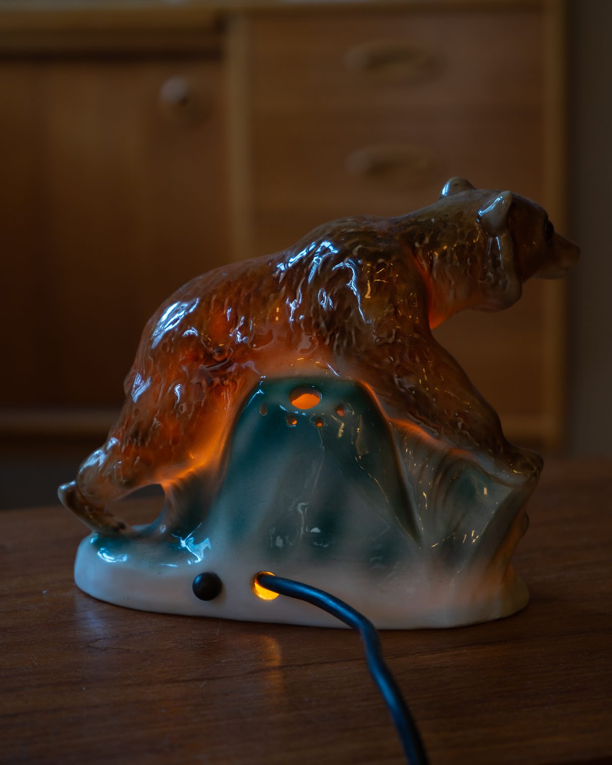 Portselanist karukujuline laualamp. Valmistatud Taanis. Heas vintage seisukorras. Vajab E14 pirni (külmikupirn).