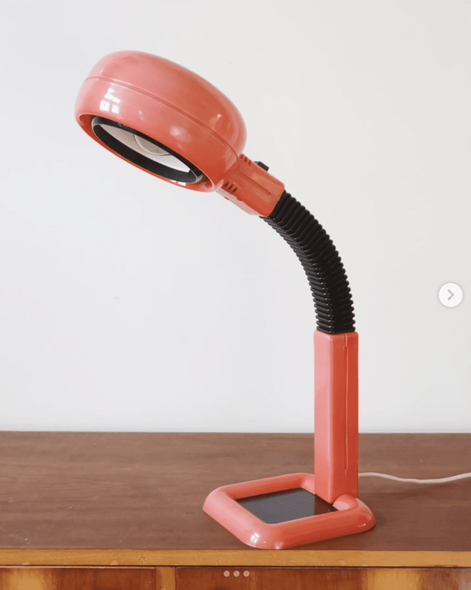 1980ndatest pärit painduva varrega laualamp. Võimalik, et inspireeritud Fagerhult Cobra mudelist. Lambi plastik on pleekinud kuid üldine sisukord on hea.
