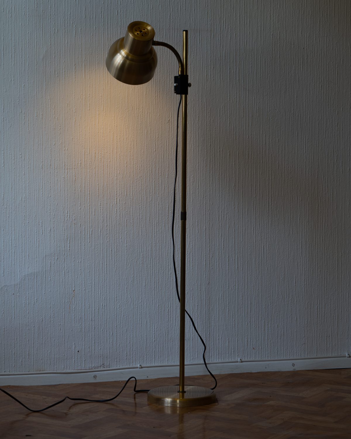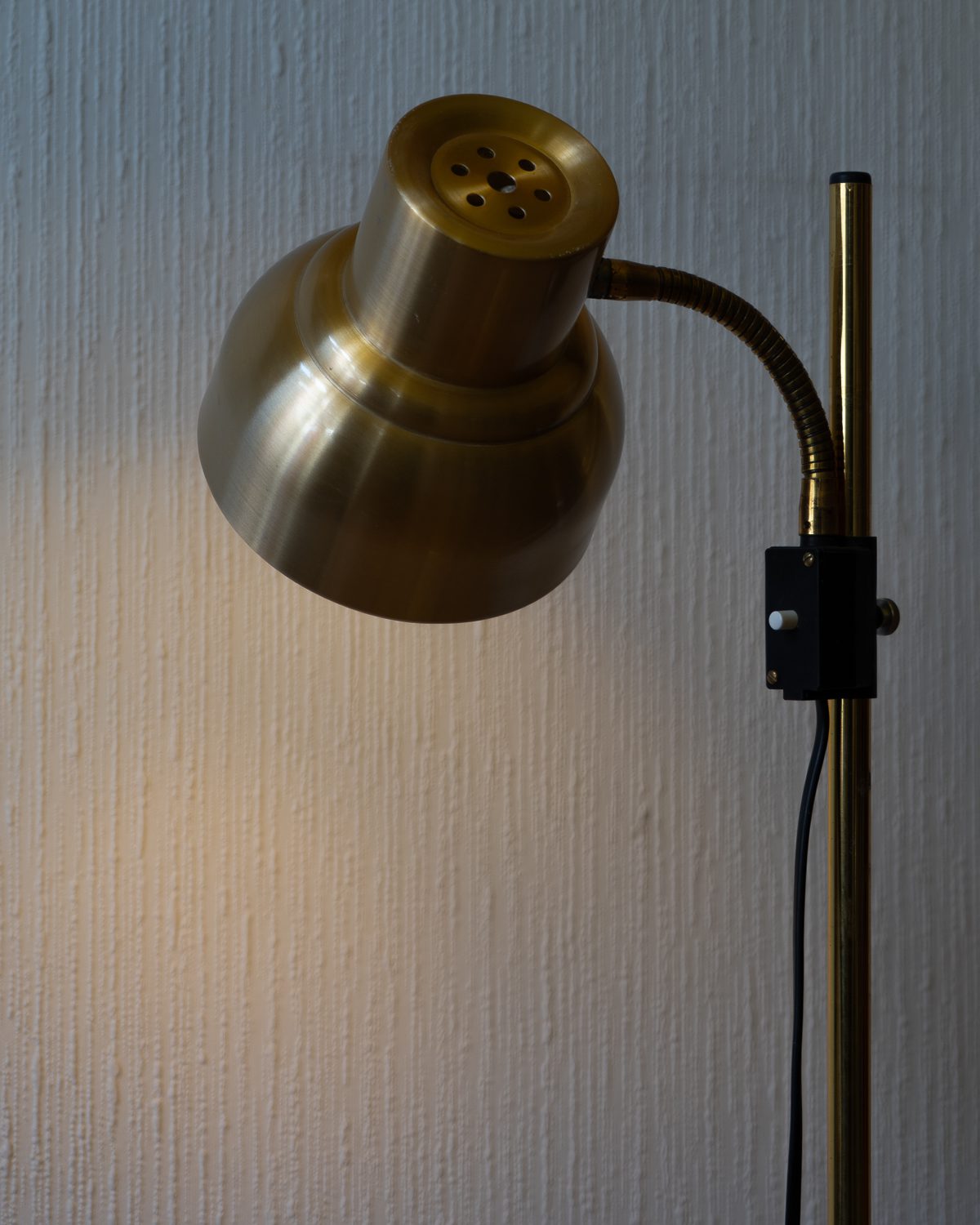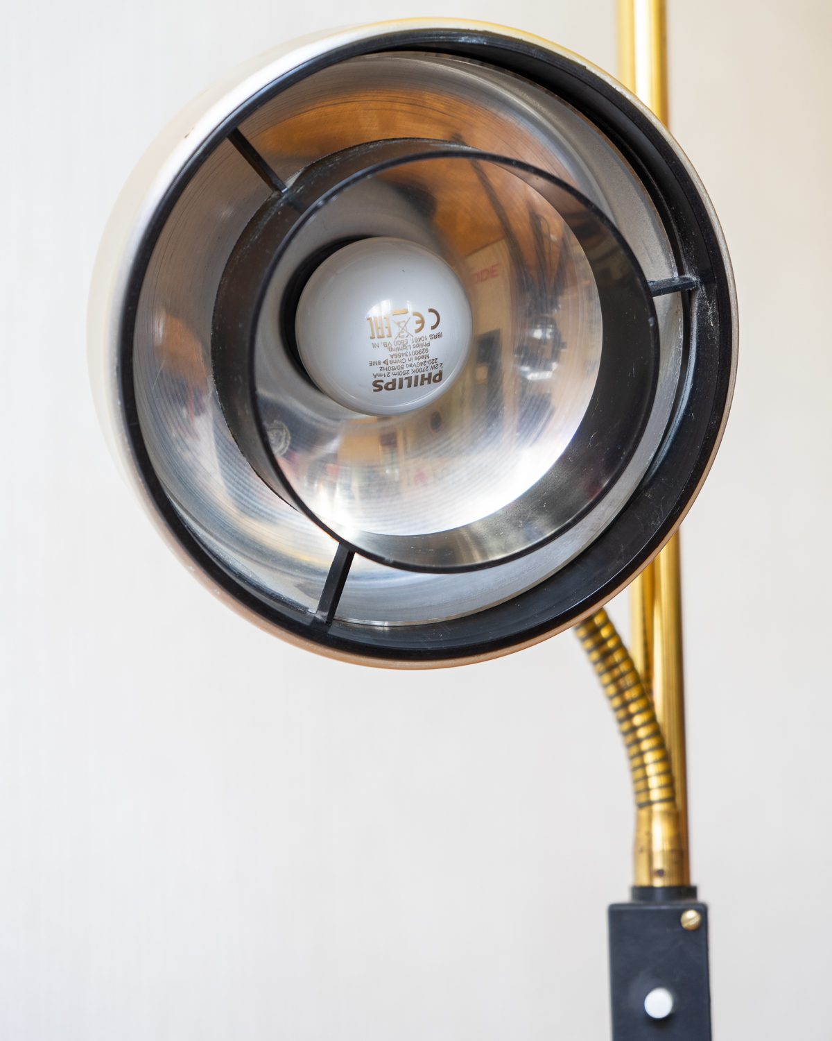 Messingu tooni metallist põrandalamp Rootsi valgustitootja Elidus eelmise sajandi teise poole tootevalikust. Kupli suund ja kõrgus on hõlpsasti reguleeritavad. Lambil esineb vähesel määral vanusele omaseid kulumisjälgi, üldiselt on lamp hästi hoitud. Lambi elektrisüsteem on kontrollitud ning töökorras.