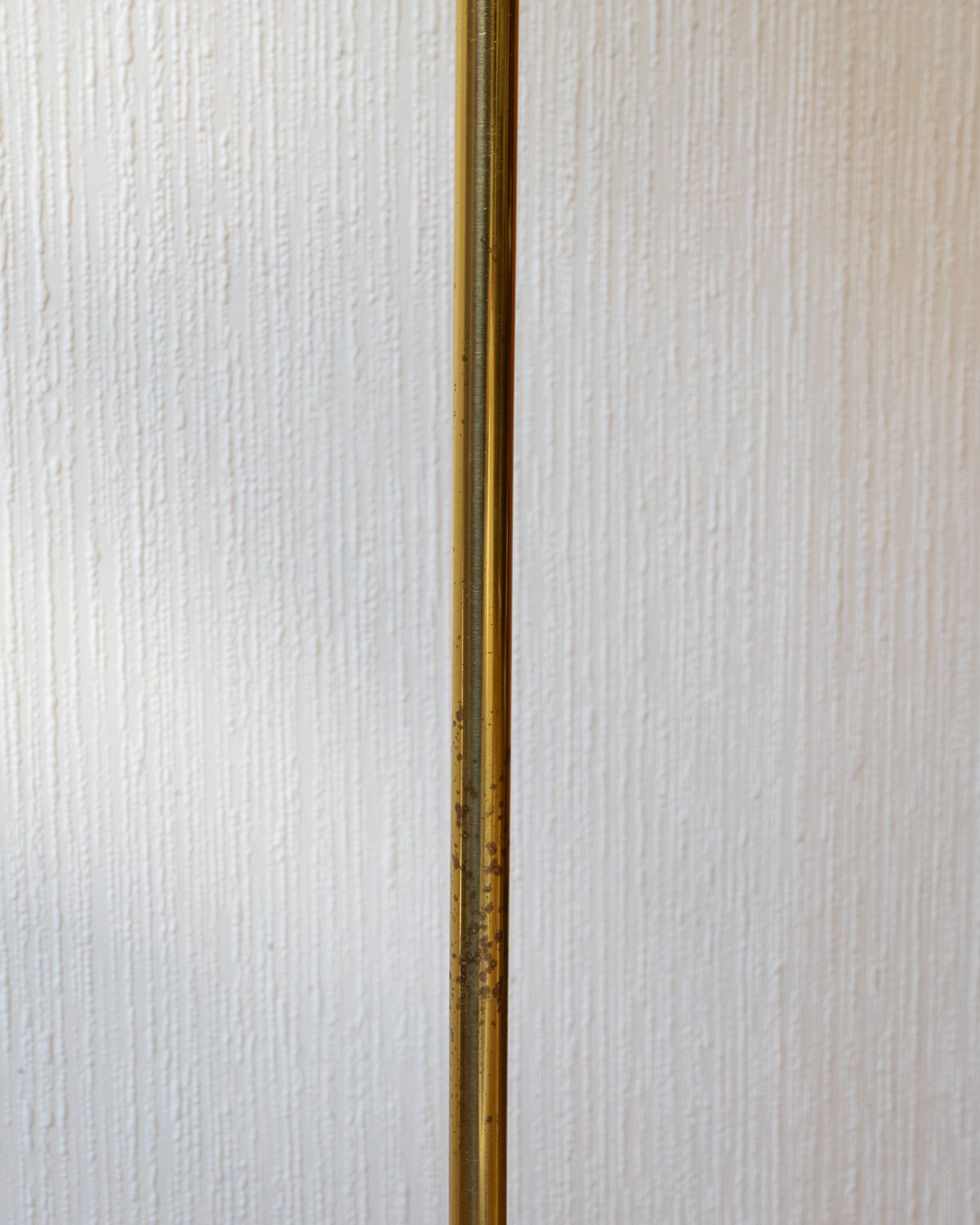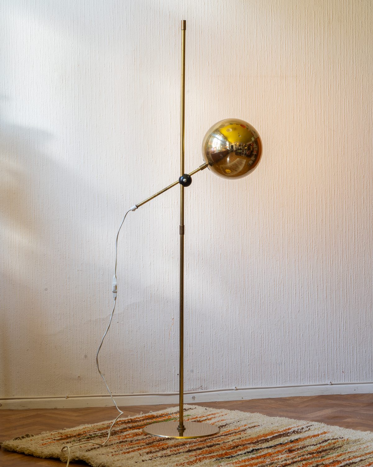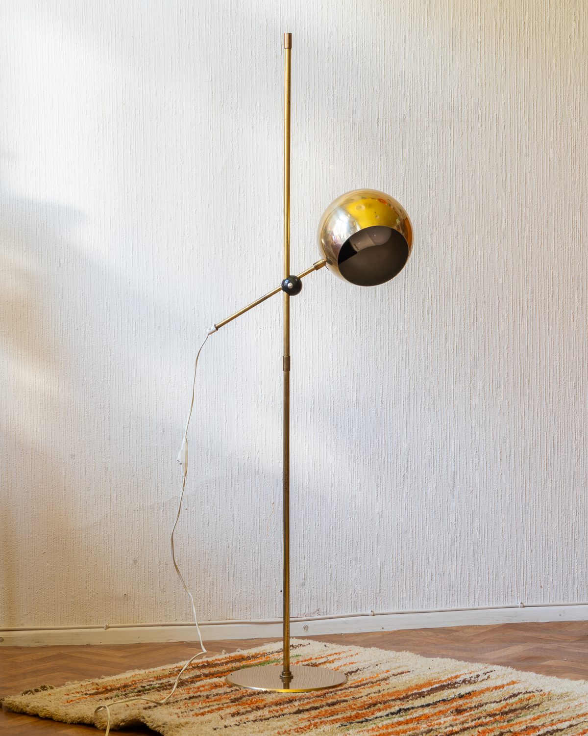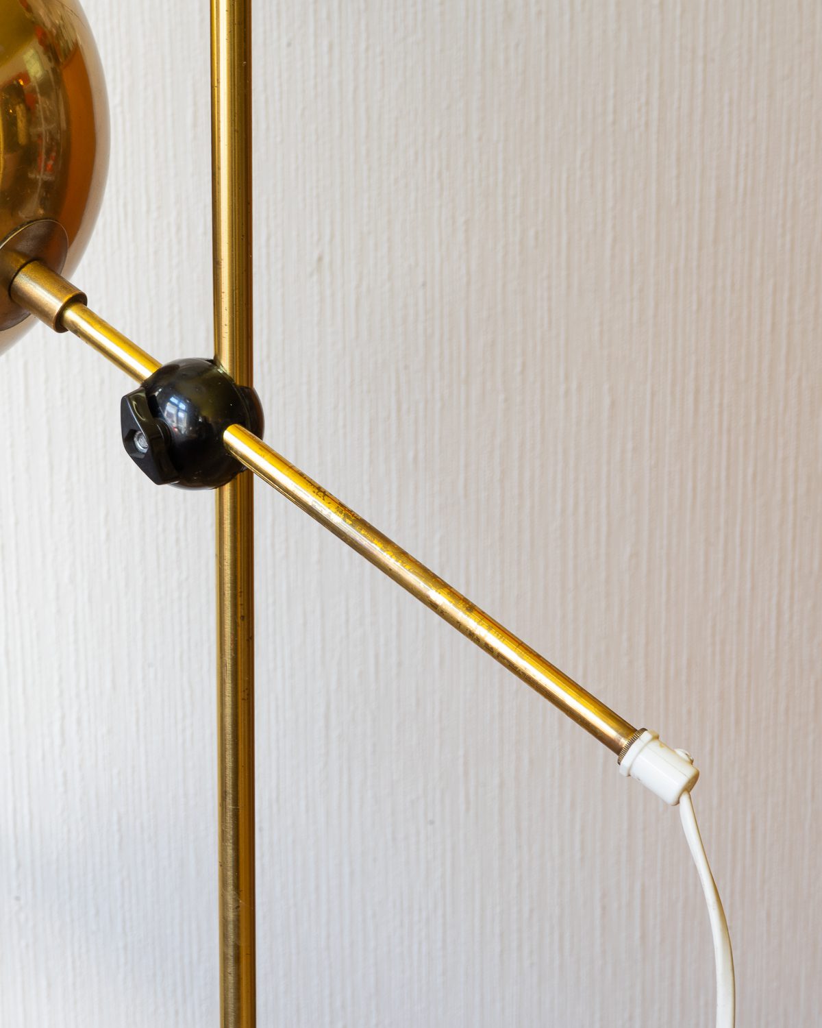 Kuldset tooni põrandalamp Rootsi valgustitootja Hemi 1970ndate tootevalikust. Kupli kõrgus ja suund on hõlpsasti reguleeritav tänu varrele. Lambikuplil ja torul on kasutamisele omaseid kulumisjälgi. Elektrisüsteem on kontrollitud ning lamp on valmis sinu koju valgust tooma.