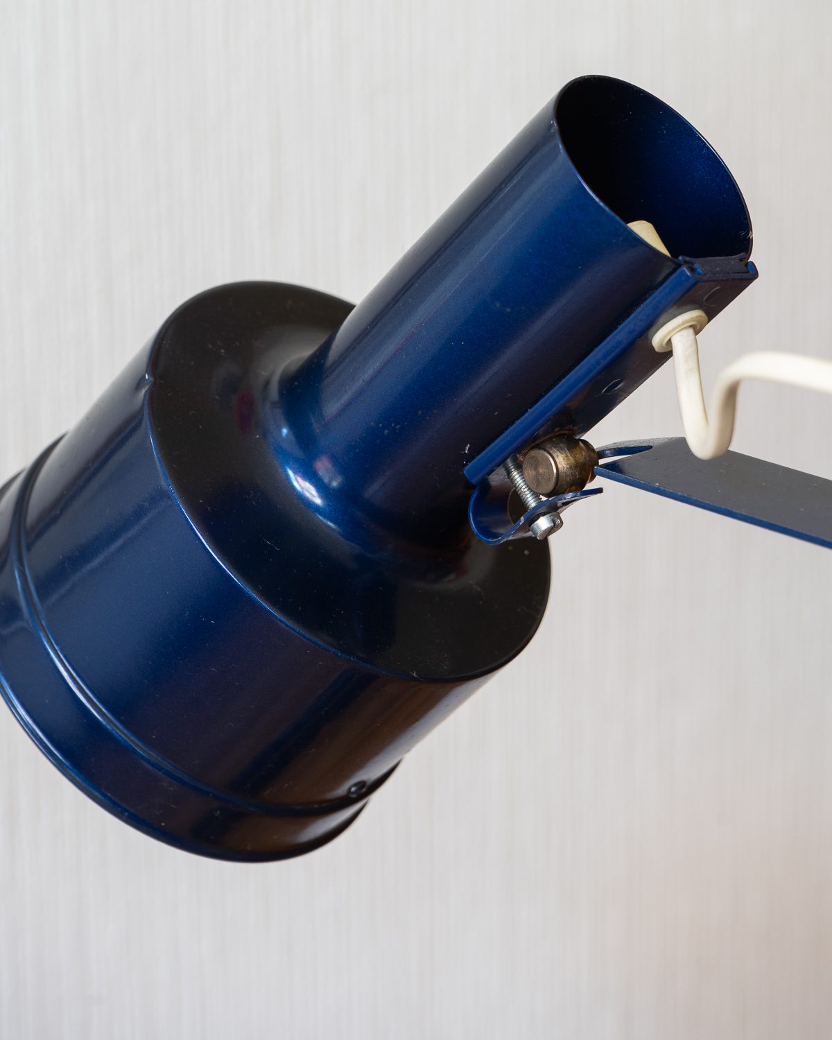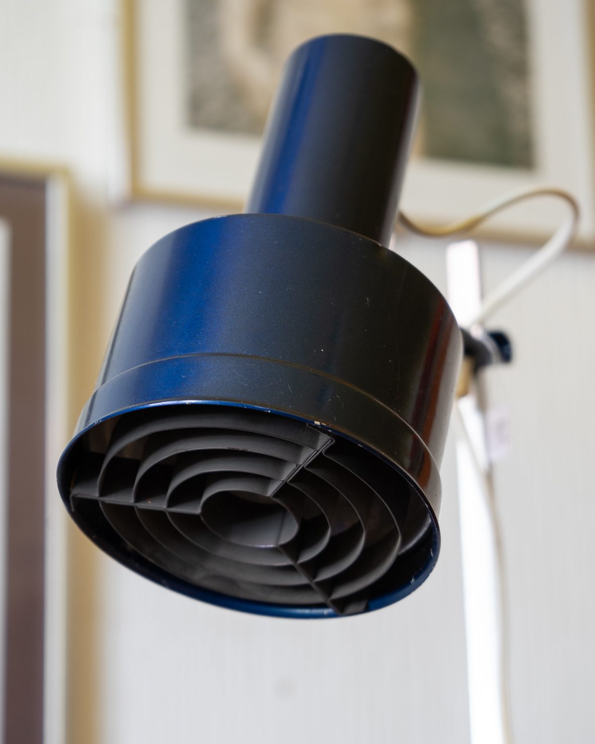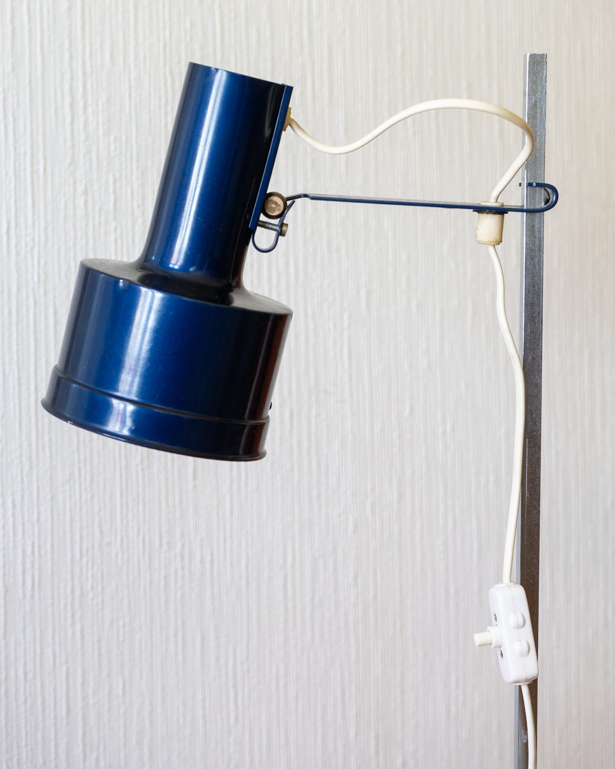 Tumesinine reguleeritava kõrguse ja suunaga põrandalamp rootsi valgustitootja Kosta Lampan eelmise sajandi teise poole tootevalikust. Lambikuplil, postil ja jalal on näha vanusele omaseid kulumisjälgi ning väiksemaid kriipse-kraapse. Elektrisüsteem on kontrollitud ning lamp on valmis sinu koju valgust tooma.