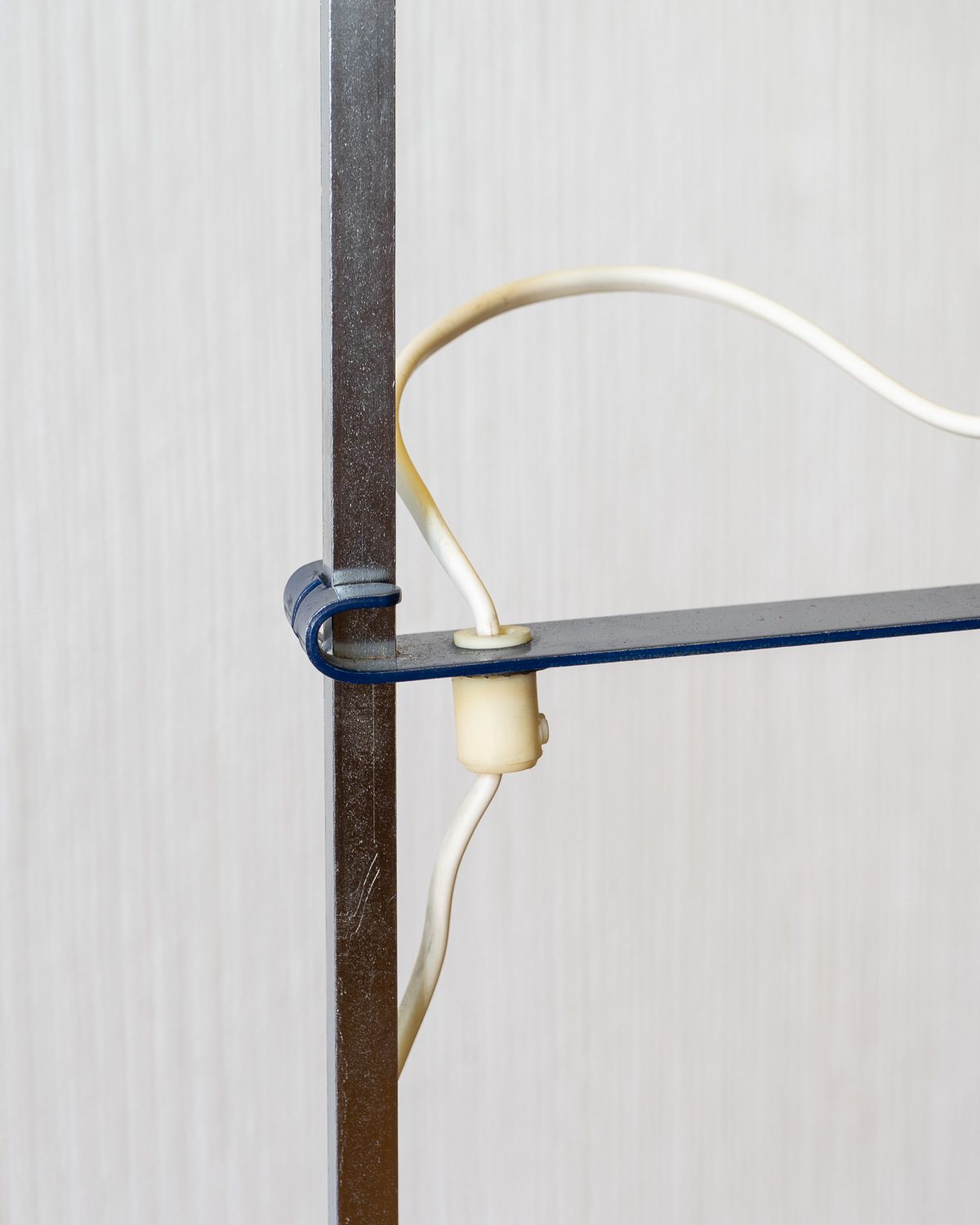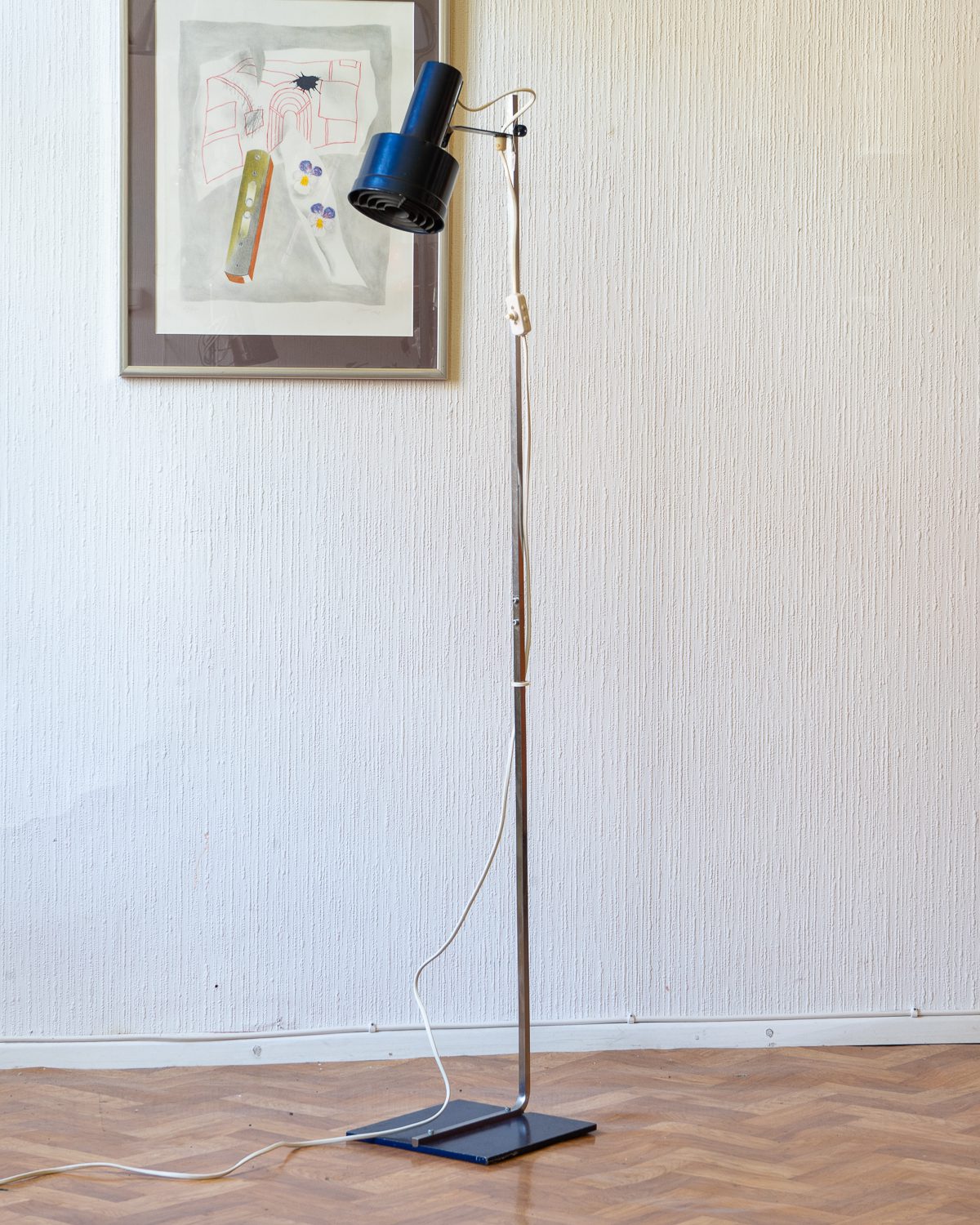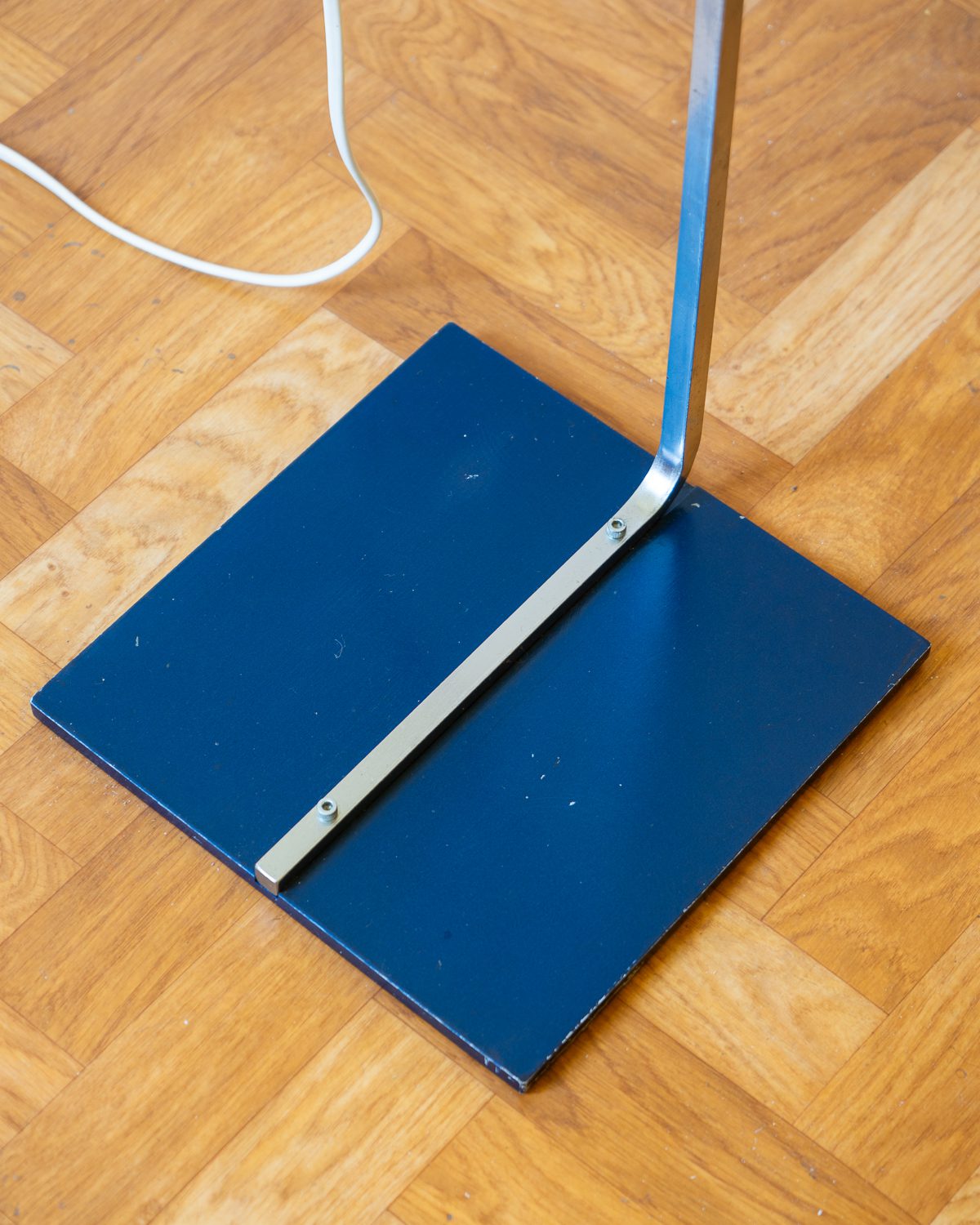 Tumesinine reguleeritava kõrguse ja suunaga põrandalamp rootsi valgustitootja Kosta Lampan eelmise sajandi teise poole tootevalikust. Lambikuplil, postil ja jalal on näha vanusele omaseid kulumisjälgi ning väiksemaid kriipse-kraapse. Elektrisüsteem on kontrollitud ning lamp on valmis sinu koju valgust tooma.
