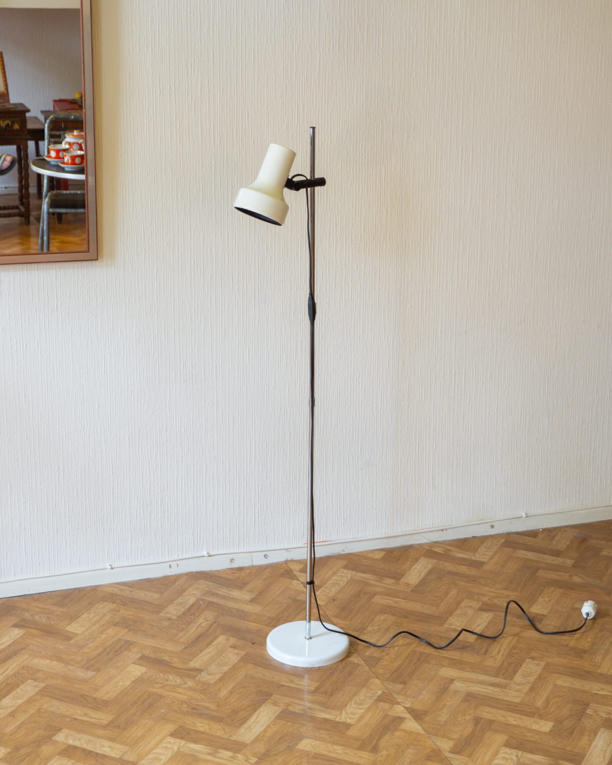 Minimalistlik Skandinaavia metallist põrandalamp. Kupli kõrgus ja nurk reguleeritavad.